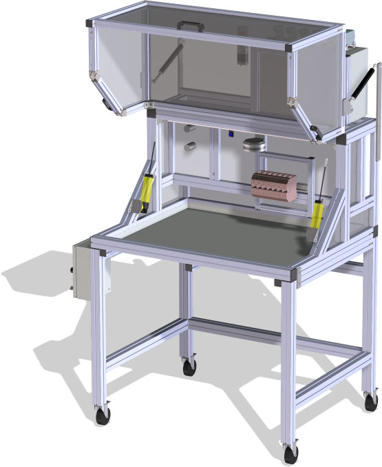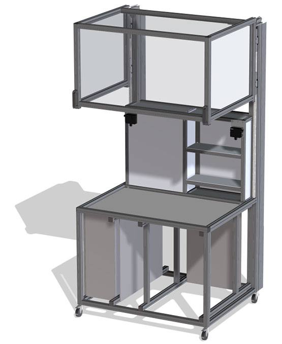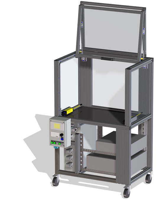 Ein weiterer Tätigkeitsbereich sind Schutzeinhausungen für Arbeits-, Test- und Entwicklungsplätze.
